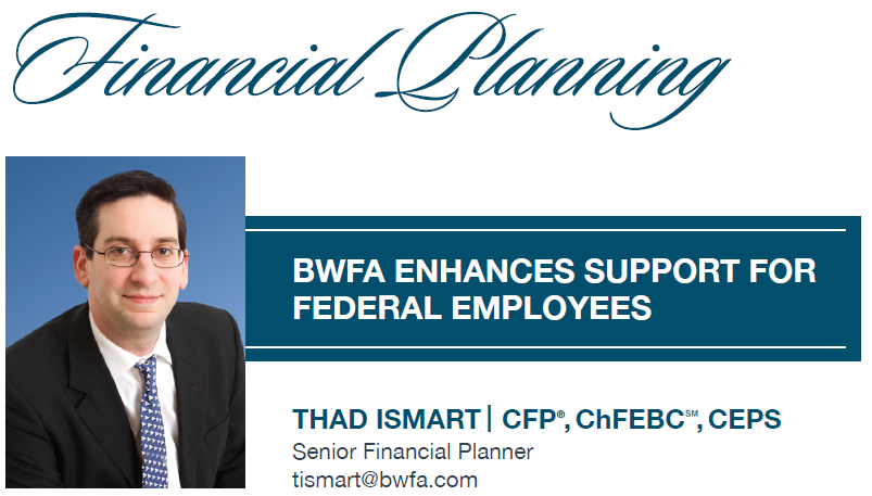 BWFA’s Financial Planners and Advisors are now more than ever capable of assisting our clients who are current or former federal workers (CSRS, FERS, CSRS Offset, FERS Transferees, Law Enforcement, Fire Fighters, Air Traffic Controllers, and others) with all their financial and retirement planning needs.