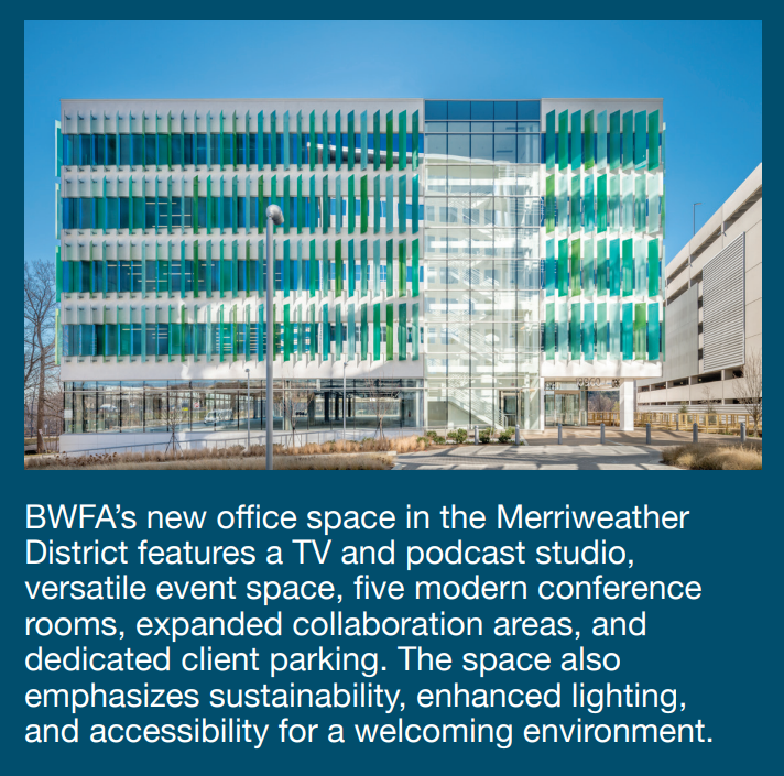 This isn’t just an office—it’s an extension of the BWFA experience. It’s where family summits happen around real tables, not virtual windows. Where long-term plans are discussed in an environment designed to inspire confidence, clarity, and calm. We’ve created a home that feels both elevated and welcoming—because that’s what our clients deserve.